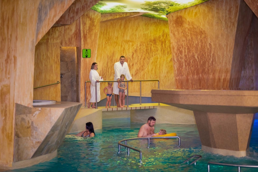 Lielais baseins ar dažādām atslābinošām atrakcijām, kuru platība ir 250 m2 ;
