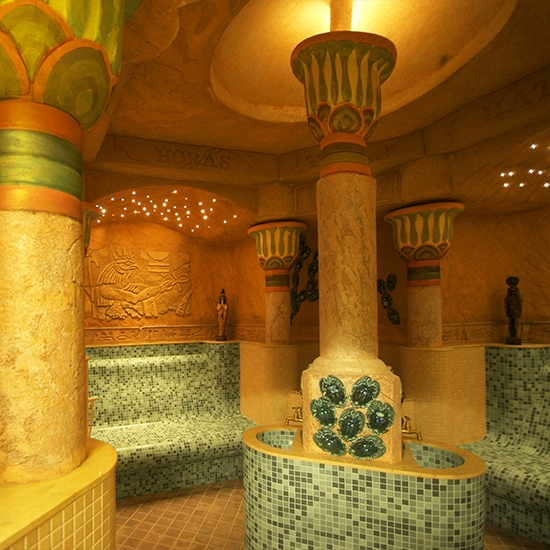 Pirts zona: Tropiskais karstums +30 grādi, 9-metrīgās palmas, zilais baseinu ūdens, 19 pirtis, aprīkojums dažādu pasaules tautu gaumē. 8 sauso saunu ar dažādu temperatūru, infrasarkanā pirts, 8 tvaika pirtis ar atšķirīgu temperatūru un mitrumu, “Hamams”, 2 ledus istabas. Viena procedūra pēc ārsta nosūtījuma: acu masāža / inhalācijas / pērļu vanna / zāļu vanna / hidromasāžas vanna / vertikālā vanna (vingrošana baseinā) / minerālā vanna / “Bioptron” gaismas terapija / skābekļa terapija / masāžas krēsls / haloterapija. Ārstnieciskā procedūras tiek nozīmētas tikai personām, kas vecākas par 18 gadiem. Ārsta procedūras rekomendācija ir jāsaņem no 14:00 līdz 19:00 iebraukšanas dienā. Pirts rituāli: 15:00, 19:00, 21:00 – ALKA (bērza/ozola slotiņas, 1 cilvēks – 5 €) 15:30,– LEVANDA (lavandas skrubis) 17:30 - LEVANDA (skrubis) 16:00, 18:30 – KANTRI (karsta mūzika) 17:30 – ALKA (viegls tvaiks) 20:30, 18:00, 21:30 – LEVANDA (saldais medus) 19:00 – ARTEMIDA (kosmētiskās maskas)