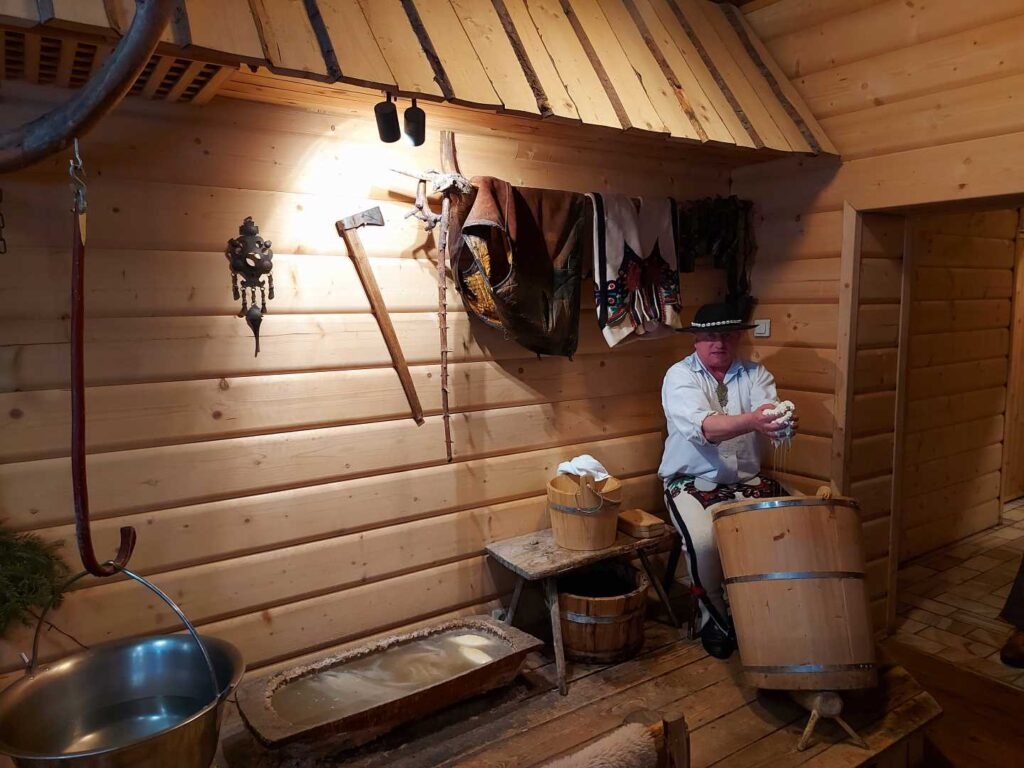 Ekskursija uz „Oscypek” māju — tas ir īsts ceļojums dzīvajā Tatru tradīcijā, kur katrs brīdis piepildīts ar kūpināta siera aromātu, kalniešu mūzikas skaņām un autentiskās Podhale kultūras garu.