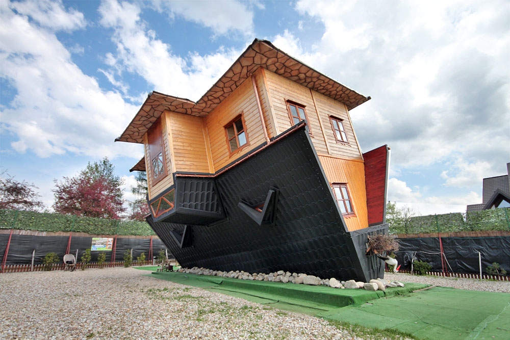Apgriezto māju – neparasta atrakcija ar apvērstu interjeru.