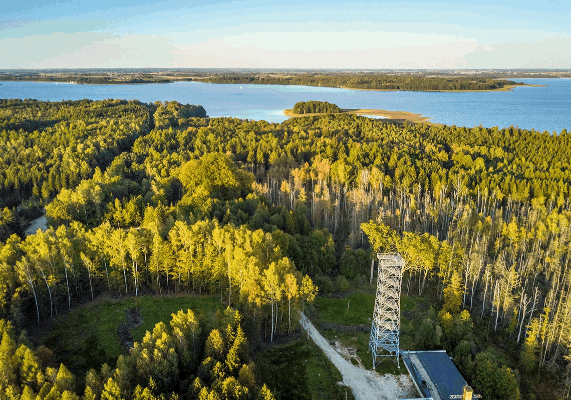 Skatu tornis kompleksa teritorijā, no kura paveras panorāmas skats uz Mazūrijas ezeriem.