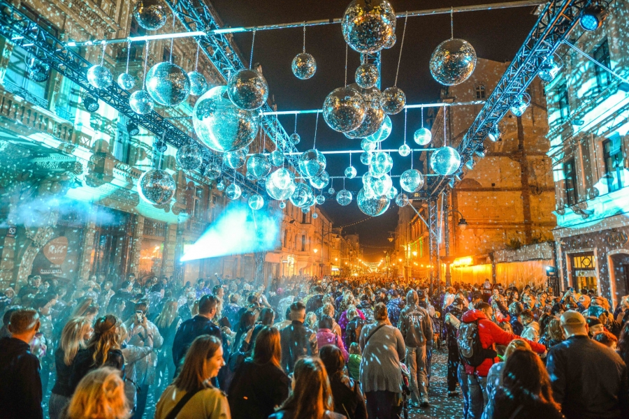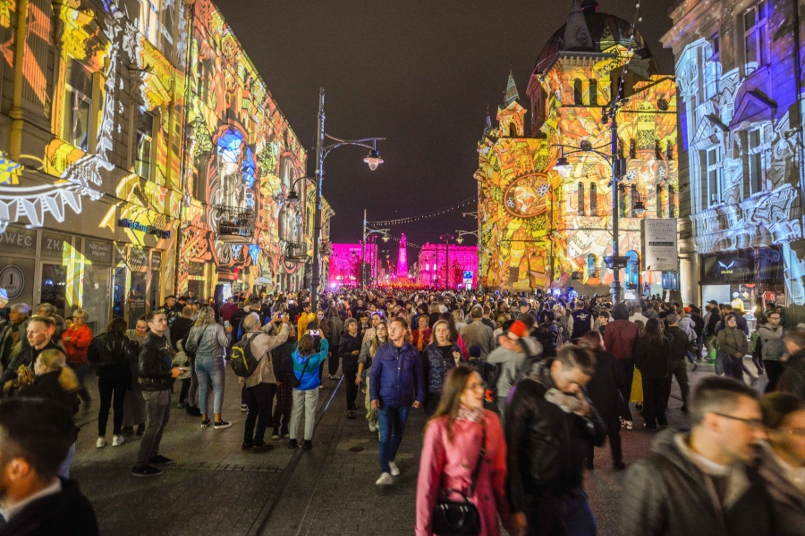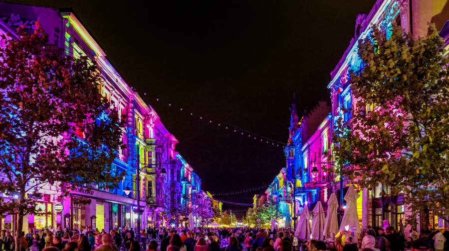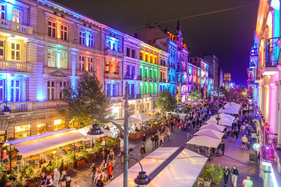 Gaismas instalācijas, projekcijas uz ēkām, muzikālais pavadījums un dažādi mākslas priekšnesumi rada neatkārtojamu atmosfēru. Galvenās festivāla norises vietas – Pjotrkovskas iela, Brīvības laukums un Moniuško parks.