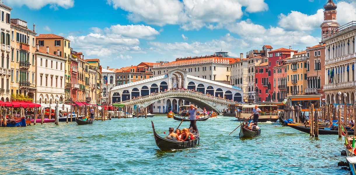 Венеция - подобного города нет на всей планете. Построенный на сваях, город словно парит над лагуной в прозрачном воздухе, наполненным солнечным светом или проступает через мелкую сетку дождя, как гравюра старого мастера. Архитектурные творения, невероятным образом созданные многими поколениями на труднейшей для застройки местности, в созвучии с водой каналов и светом образуют единственную в своем роде гармонию. Этот город смело можно назвать город – музей. Тут на каждом шагу расположены шедевры архитектуры прошлых веков, памятники и другие достопримечательности. Например, знаменитые мосты: “Золотой мост”, “мост Вздохов” и “Мост Менял”, здание Старых и Новых Прокураций, дворец Венир-де-Леони, дворец Дожей, библиотека, Башня Часов, колокольня Кампаниле со смотровой площадкой, грандиозный комплекс Арсенала, собор Санта-Мария-делла-Салюте, базилика Фрари и торговая улица Мерчерия. Большинство венецианских улочек-каналов так узки, что в стены противоположных домов можно легко упереться руками, при этом сами здания достигают высоты 7 этажей.