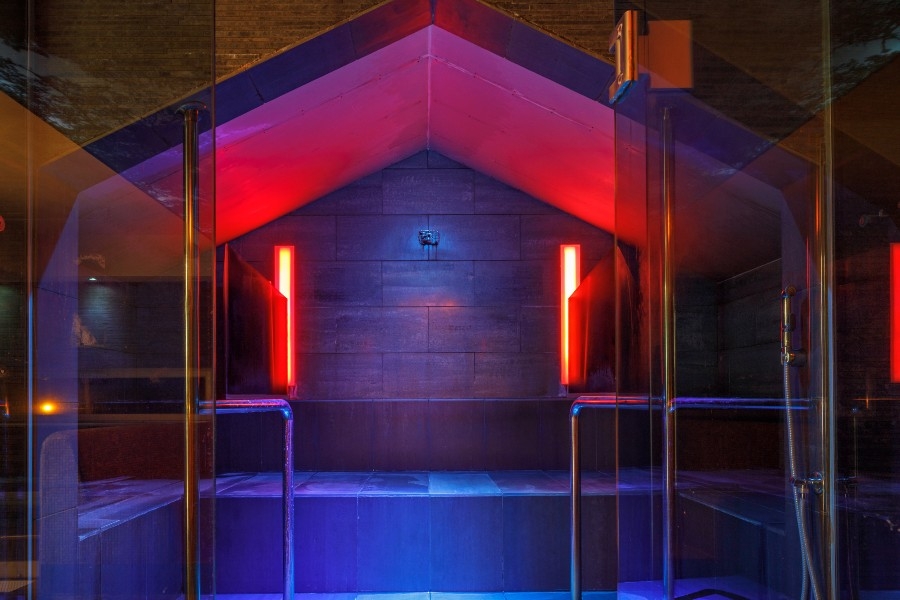Паровая арома сауна. Низкая температура 45-55˚C и высокая влажность воздуха (100%)