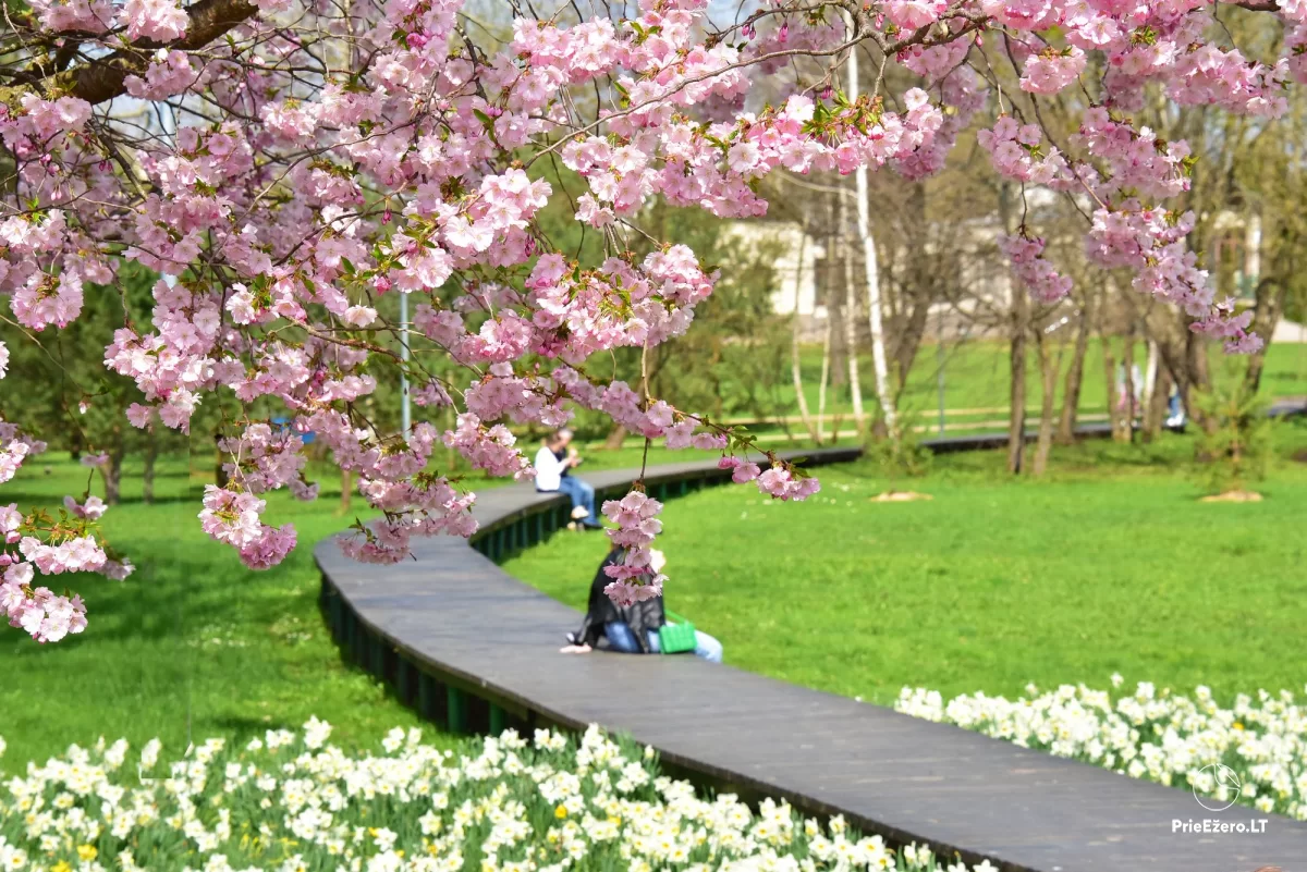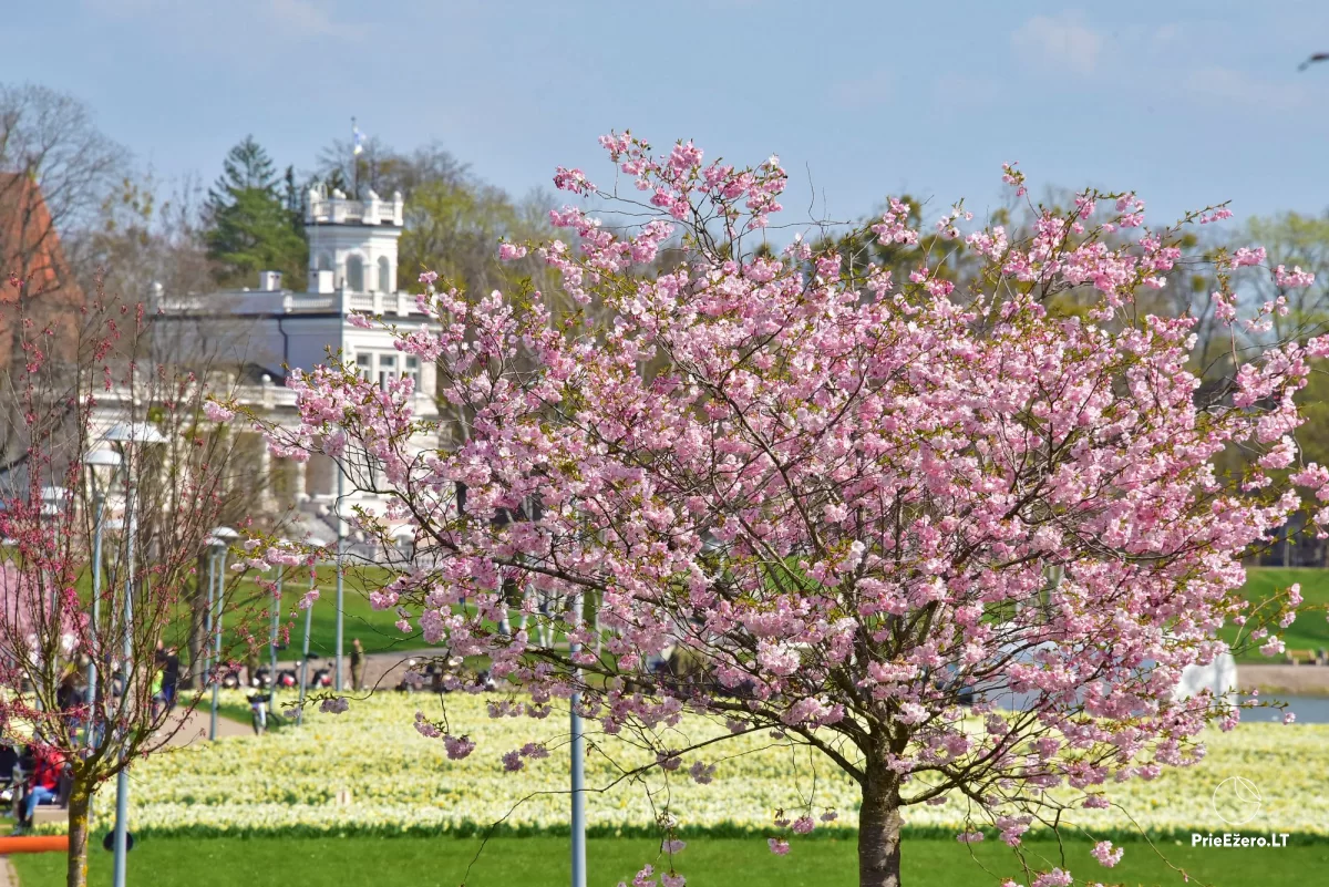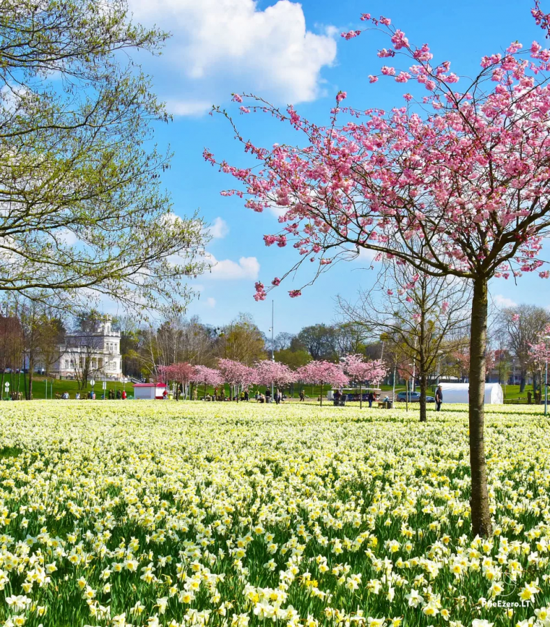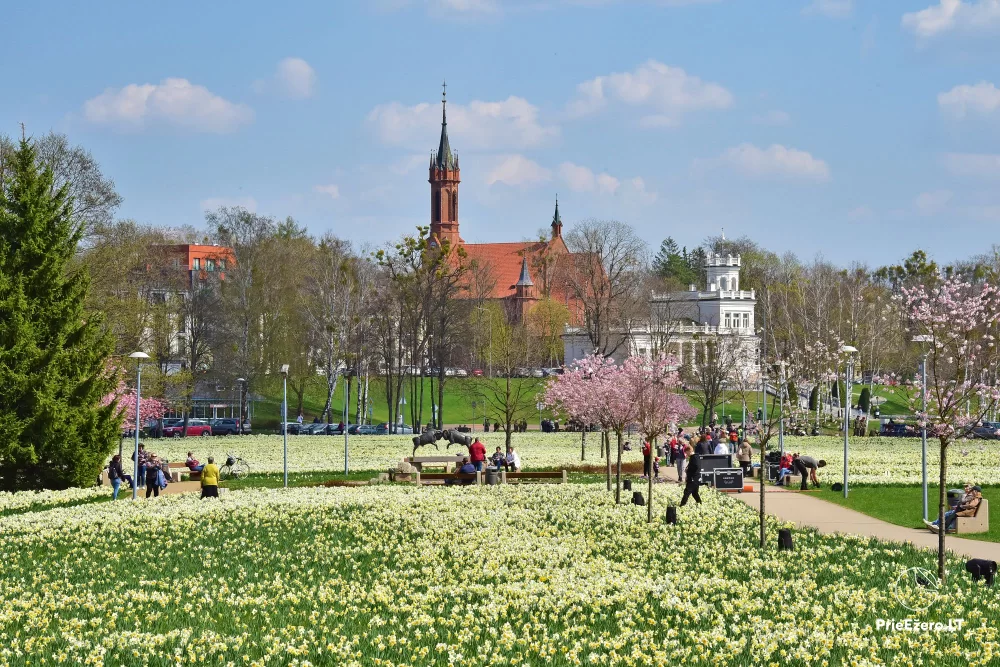 Ваш путь начнется у тенистых аллей старого курортного парка. Воздух здесь особенный - тёплый, чистый, чуть влажный после недавнего дождя, словно наполненный обещанием обновления. Лёгкий ветер приносит свежий аромат сосен и нежную сладость первых цветов. Перед вами открывается огромный холм, целиком залитый золотисто-жёлтым и снежно-белым ковром нарциссов. Тысячи цветов покачиваются на ветру, словно море света. Они тянутся вдоль дорожек, обступают скамейки, поднимаются волнами на пригорки и аккуратно обрамляют старые деревья. Традиция - высаживать нарциссы тысячами - началась много лет назад. Теперь каждую весну сюда приезжают люди из всей Литвы и соседних стран, чтобы увидеть цветение, которое длится всего пару недель, но остаётся в памяти надолго.