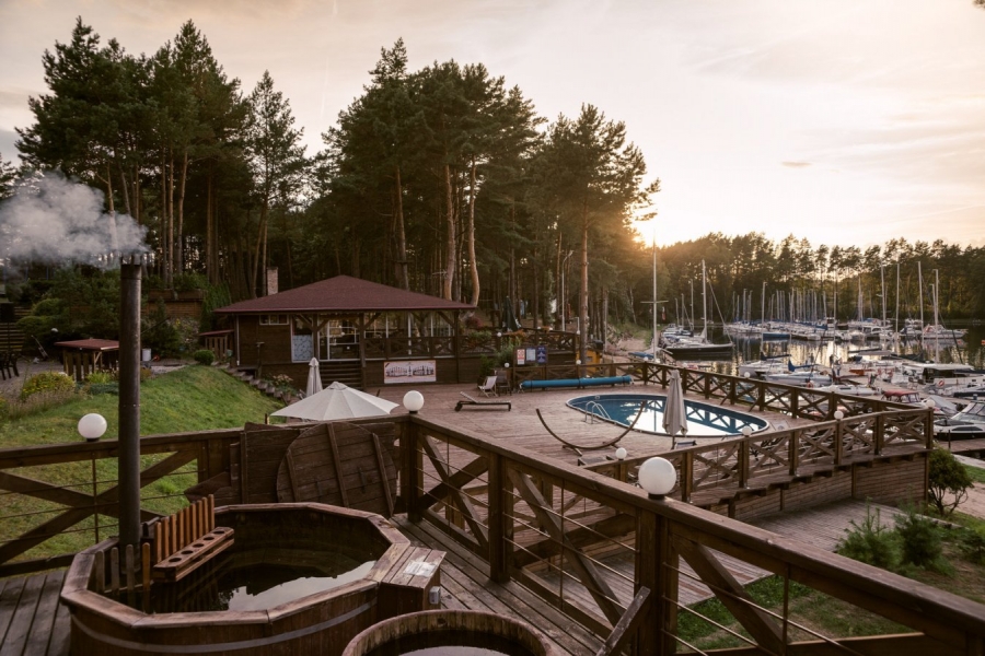 Планируется праздничная программа с руководителем группы, элементы традиций Лиго и тёплая компания. По желанию гостей — угощения у костра (сосиски, хлеб, соленья, чай, пиво), свободное общение, музыка и отдых на природе. Для желающих отель предлагает настоящий мазурский wellness-вечер (за дополнительную стоимость): - Мазурская гидромассажная ванна под открытым небом.